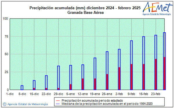 Las precipitaciones son la base fundamental de nuestro trabajo, ya que nos dedicamos a perforaciones para sacar agua. Segun la AEMET en Granada, cuyas imagenes las incluyo en esta entrada, hemos tenido un invierno más seco en comparacion con los años comprendidos entre 1991 y 2020. En estos graficos podemos comprobar que la primavera de este año 2025 ha superado con creces las lluvias de dichos años, teniendo un invierno, verano y otoño con escasez de lluvias.